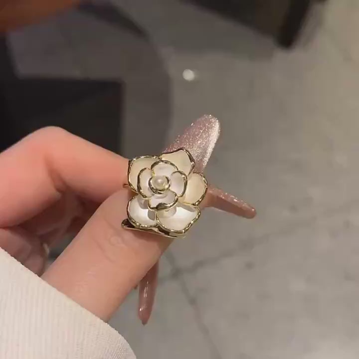 Camellia flower electroplated copper drop-glazed jewelry ring