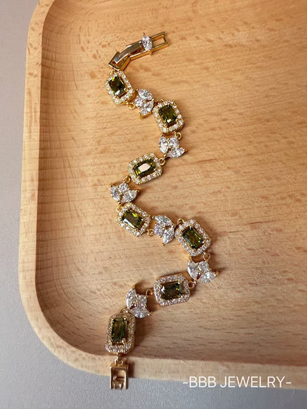 Elf Series cube sugar leaf copper 14K gold zircon bracelet
