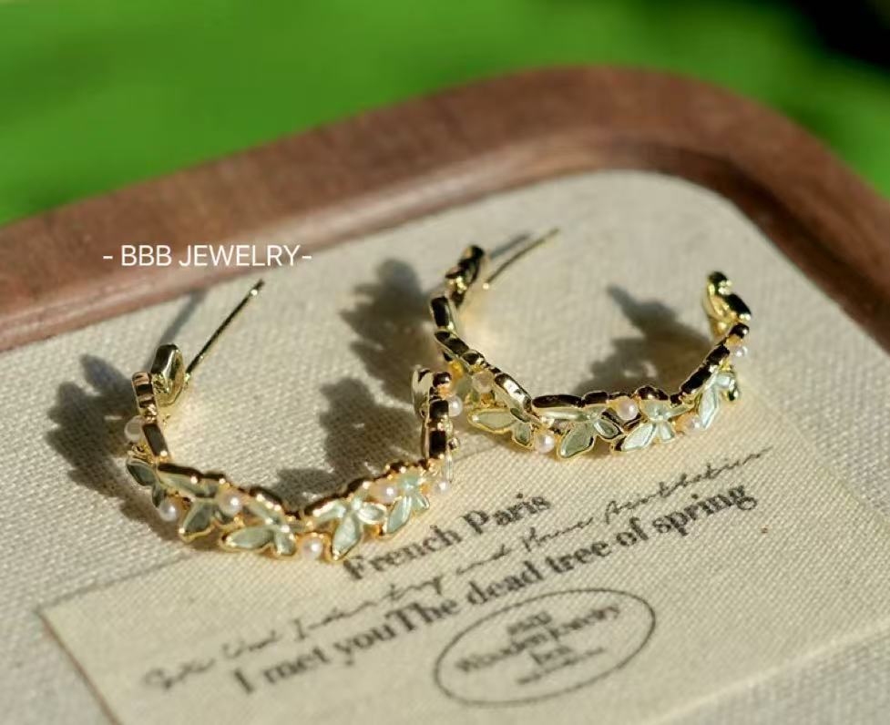 Enamel-dipped copper base with 14k gold butterfly earrings