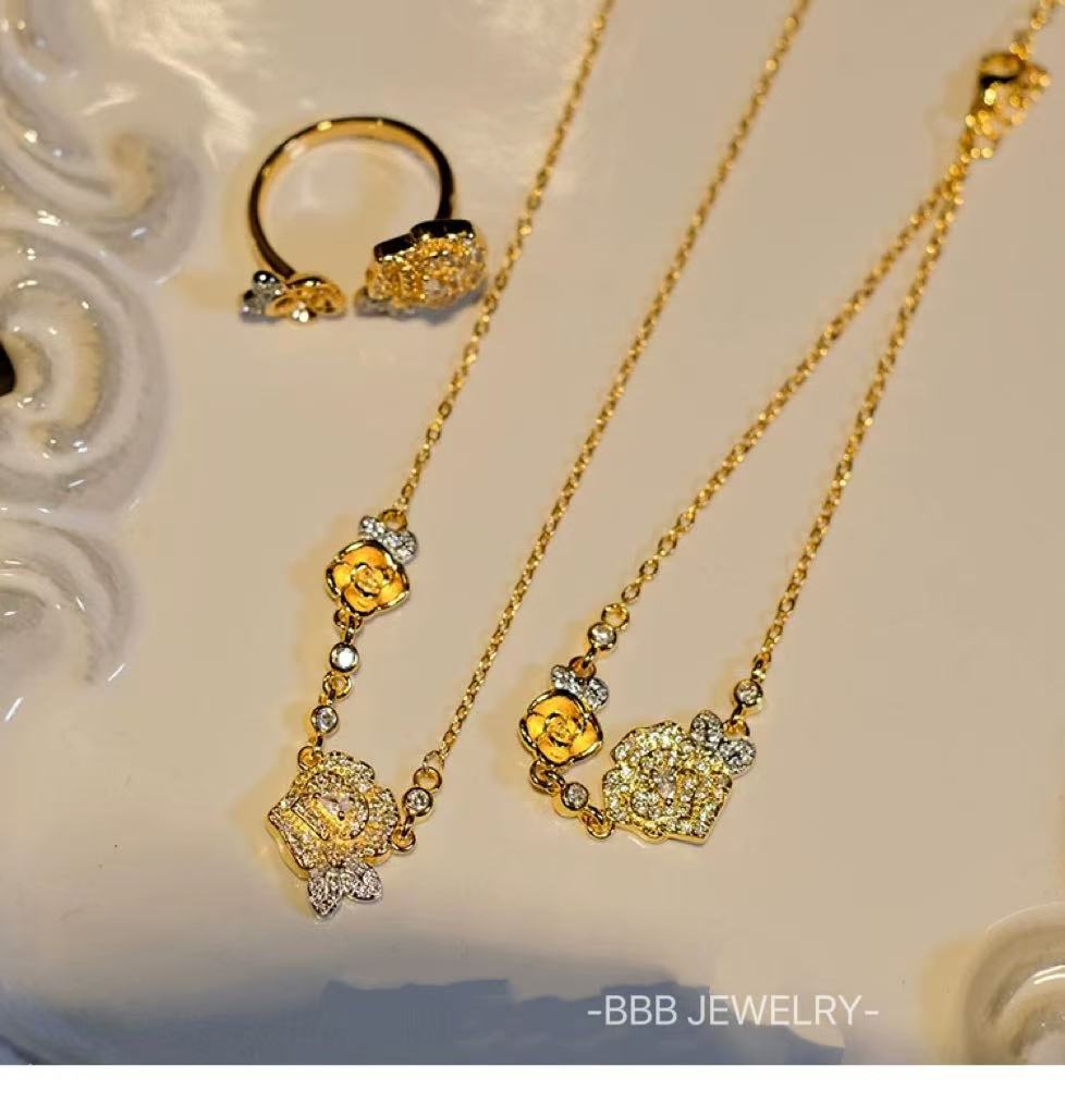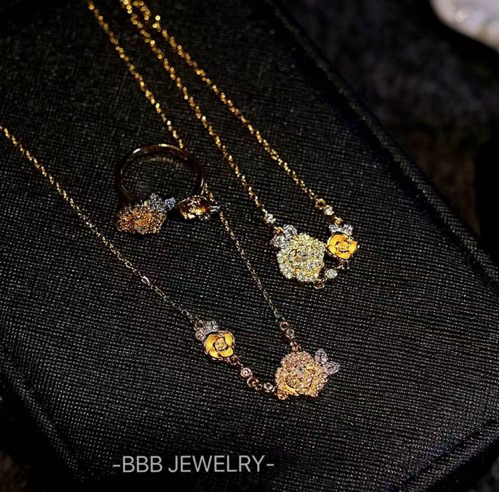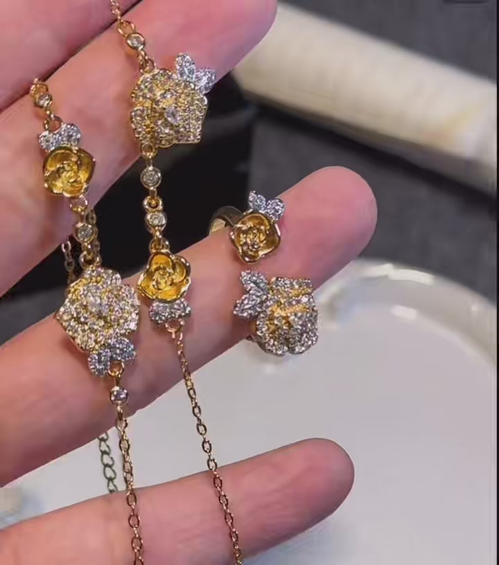 Yellow rose series copper 14K gold zircon bracelets and rings